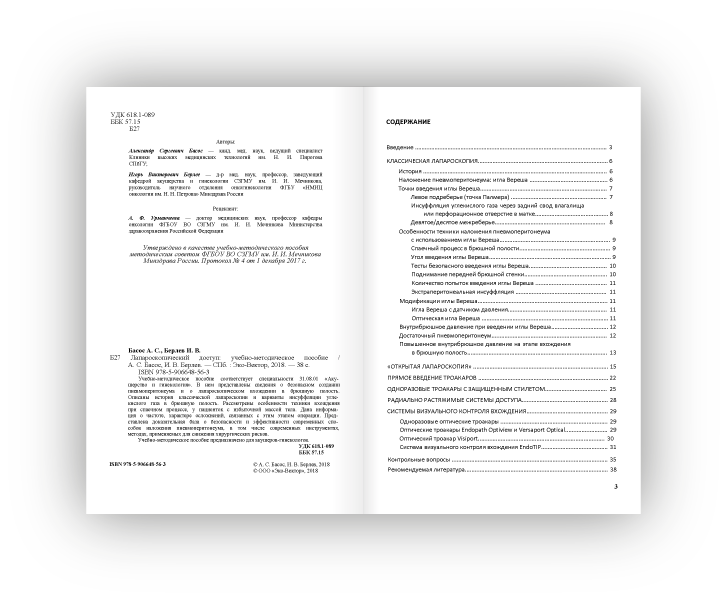 Лапароскопический доступ : учеб.-метод. пособие / А. С. Басос, И. В. Берлев ; М-во здравоохранения РФ, ФГБОУ ВО "Северо-Запад. гос. мед. ун-т им. И. И. Мечникова" М-ва здравоохранения РФ, Каф. акушерства и гинекологии. - СПб. : Эко-Вектор, 2018. - 38, [2] с. : ил., табл., портр.
