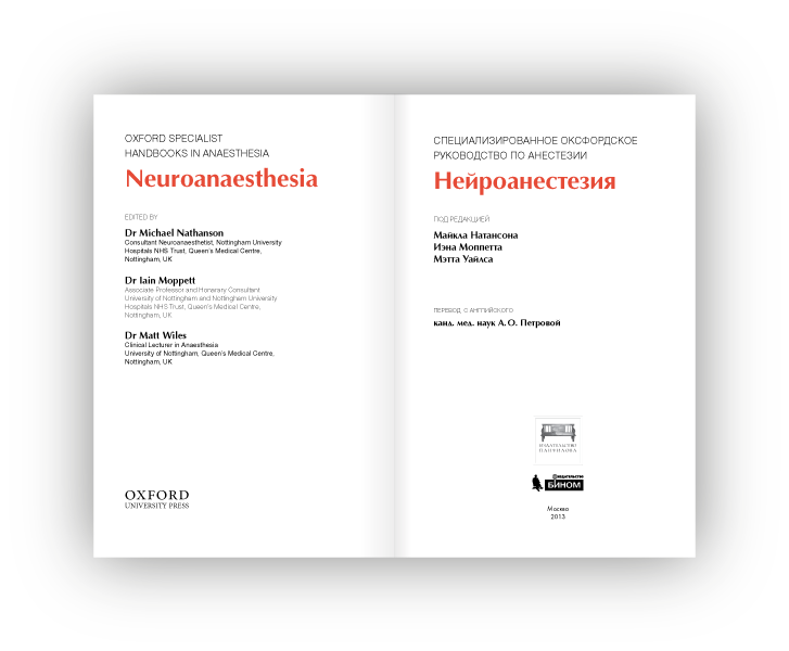 Нейроанестезия: [руководство]/ под ред. Майкла Натансона, Иэна Моппетта, Мэтта Уайлса; пер. с англ. А. О. Петровой. - М.: Изд-во Панфилова: БИНОМ. Лаб. знаний, 2013. - XVI, 439, [1] с.: ил., табл.