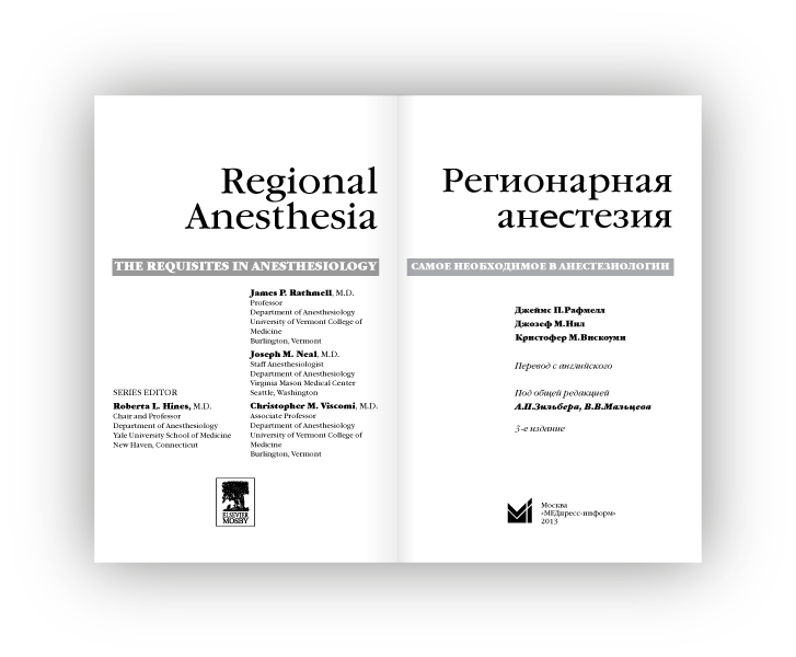Регионарная анестезия: самое необходимое в анестезии: [пер. с англ.]/ Джеймс П. Рафмелл, Джозеф М. Нил, Кристофер М. Вискоуми; под общ. ред. А. П. Зильбера, В. В. Мальцева. - 3-е изд. - М.: МЕДпресс-информ, 2013. - 272 с., [2] л. цв. ил.: ил., табл.