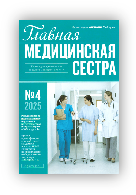 Главная медицинская сестра: журнал для руководителя среднего медперсонала ЛПУ. - Москва: ООО "Актион Цифровое издательство", 2025. - №4.