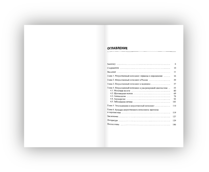 В монографии в сжатой и доступной форме представлены основные понятия и определения, детализированы структура, вопросы развития и внедрения искусственного интеллекта, отмечены трудности и недостатки, реалии и перспективы внедрения в повседневную жизнь, здравоохранение, диагностику, обобщен уникальный опыт исследователей по применению перспективных технологий интеллектуальных программ и инноваций в ультразвуковой визуализации. Наглядно и доходчиво описаны и представлены примеры использования реализованных программных обеспечений искусственного интеллекта с позиций современной доказательной медицины, последних клинических рекомендаций по основным направлениям их эффективного применения на сегодняшней день: в акушерстве и гинекологии, в онкологии при выявлении, дифференцировке и стратификации новообразований различных локализаций. Дана оценка интеграции и интерпретаций новейших программ и инноваций искусственного разума, интегрированных в ультразвуковое диагностическое оборудование, проведена аналитика результатов ультразвуковых исследований в соответствии с современными версиями международных систем стратификаций TI-RADS, BI-RADS, LI-RADS, IOTA-ADNEX, некоторых других.