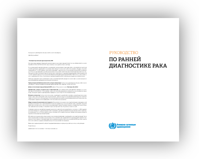 Руководство по ранней диагностике рака : [пер. с англ. / A. Ilbawi и др. ; под общ. рук.: E. Krug, Ch. Varghese] ; ВОЗ. - М. : Медицина, 2018. - [IV], 38 с. : ил., табл.