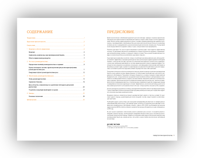 Данное руководство разработано в помощь руководителям программ в области противораковой борьбы с целью содействия в практической реализации программ ранней диагностики рака посредством подробного описания концепции ранней диагностики.
