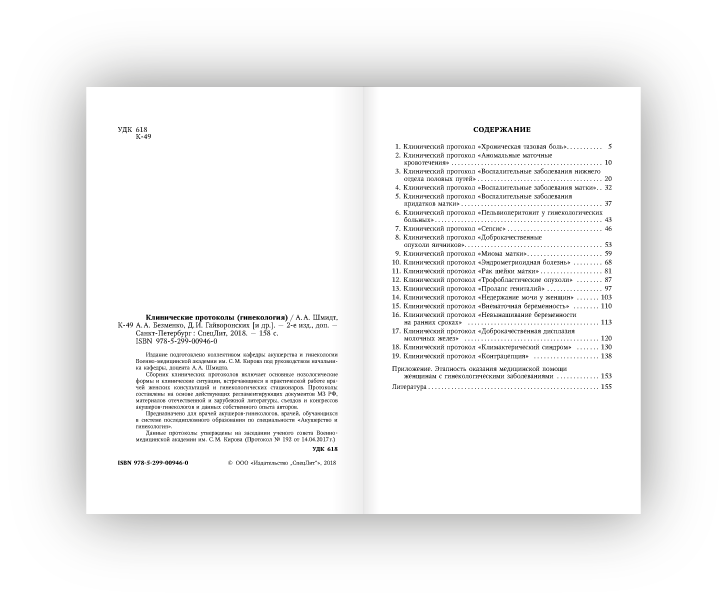 Клинические протоколы (гинекология)/ [А. А. Шмидт и др.]. - 2-е изд., доп. - СПб.: СпецЛит, 2018. - 157, [3] с.: ил., табл.