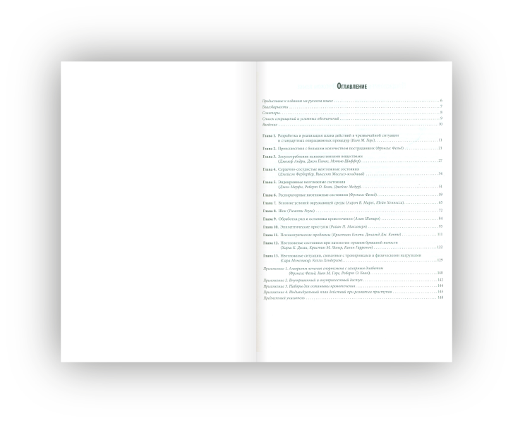 Освещены такие темы, как разработка и осуществление планов действий в чрезвычайных ситуациях и при стандартных оперативных процедурах, массовые жертвы, злоупотребление психоактивными веществами, сердечная и респираторная помощь, неотложные состояния эндокринной патологии, экологические проблемы, шок, судороги, неотложная помощь при болях в животе, психиатрические проблемы, нарушения гемостаза.