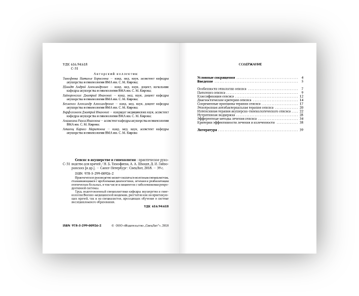 Сепсис в акушерстве и гинекологии: соврем. аспекты клиники, диагностики и лечения: практ. рук. для врачей/ [Н. Б. Тимофеева и др.]. - СПб.: СпецЛит, 2018. - 39, [1] с.: ил., табл.
