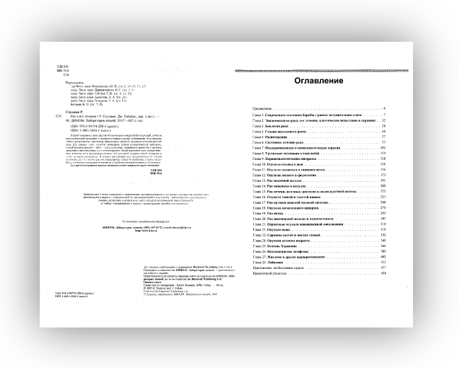 В девяти первых главах дается обзор механизмов развития опухолей, лечения онкологической патологии и поддерживающего ухода за больными. В остальных главах представлены принципы организации лечения основных разновидностей рака. Для каждой разновидности приведены детали патологической анатомии, способ распространения, клиническое описание, стадийность развития и лечение средствами рентгенотерапии и химиотерапии. Особо выделена роль хирургического лечения, хотя детали выполнения той или иной хирургической операции в книге не рассматриваются. В список литературы для дополнительного чтения включены ссылки на обзоры или характерные статьи по проблеме, а также на работы, имеющие историческое значение, и наиболее важные недавние публикации.
