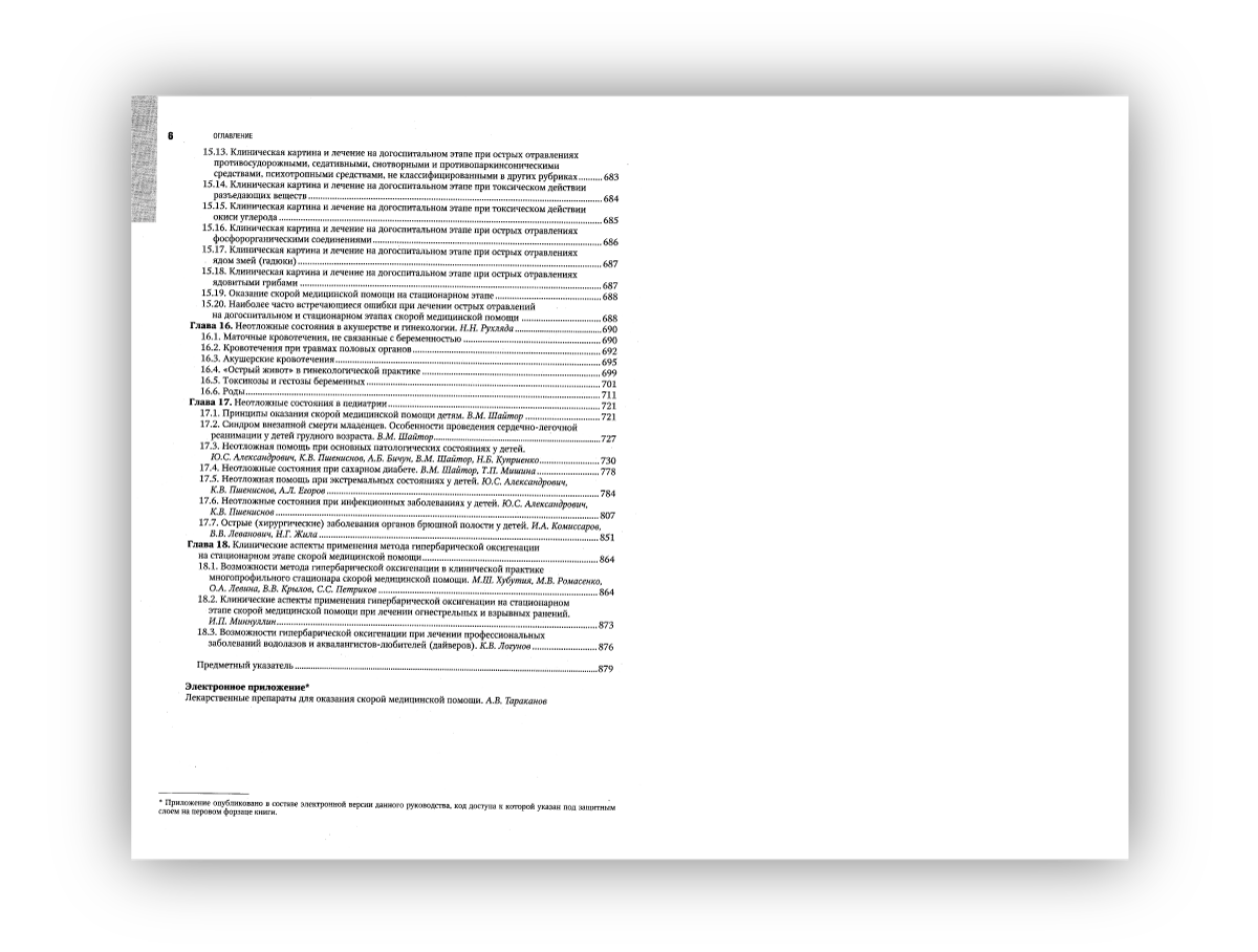 Структура руководства включает разделы, посвященные организационным и экономическим аспектам практической деятельности специалистов догоспитального и стационарного этапов скорой медицинской помощи. Данное обстоятельство обусловлено введением в законодательство норм, качественно меняющих систему функционирования скорой медицинской помощи. Частные вопросы неотложной медицины представлены по единому плану и включают сведения об этиологии, патогенезе, схемах медикаментозной терапии и лечебных мероприятий. Руководство содержит главы, посвященные актуальным в настоящее время разделам неотложной медицины - стационарным отделениям скорой медицинской помощи, гипербарической оксигенации, огнестрельным и взрывным ранениям, вопросам взаимодействия скорой медицинской помощи и медицины катастроф и др.