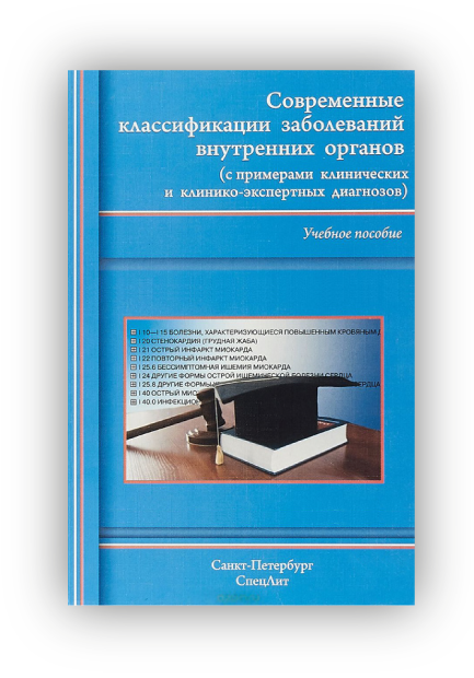 Современные классификации заболеваний внутренних органов: (с примерами клинических и клинико-экспертных диагнозов): учеб. пособие/ [А.С. Балабанов и др.]; под ред. А.В. Гордиенко. - 3-е изд., стер. - СПб.: СпецЛит, 2018. - 200 с.: табл.