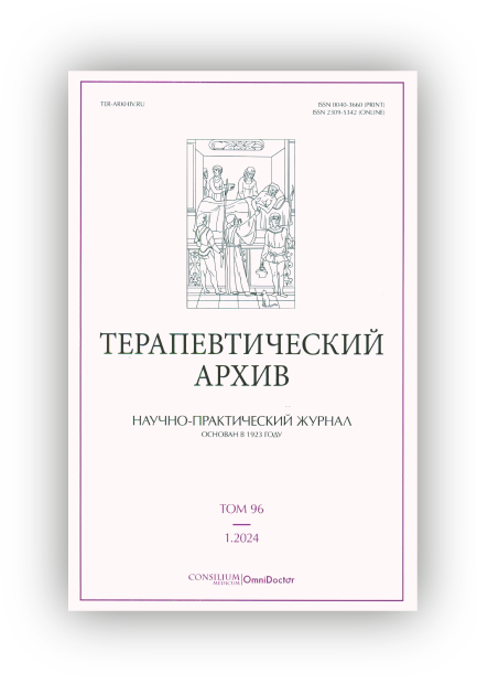 Терапевтический архив: научно-практический рецензируемый журнал. – Москва: ООО "Консилиум Медикум", 2024. – №1.