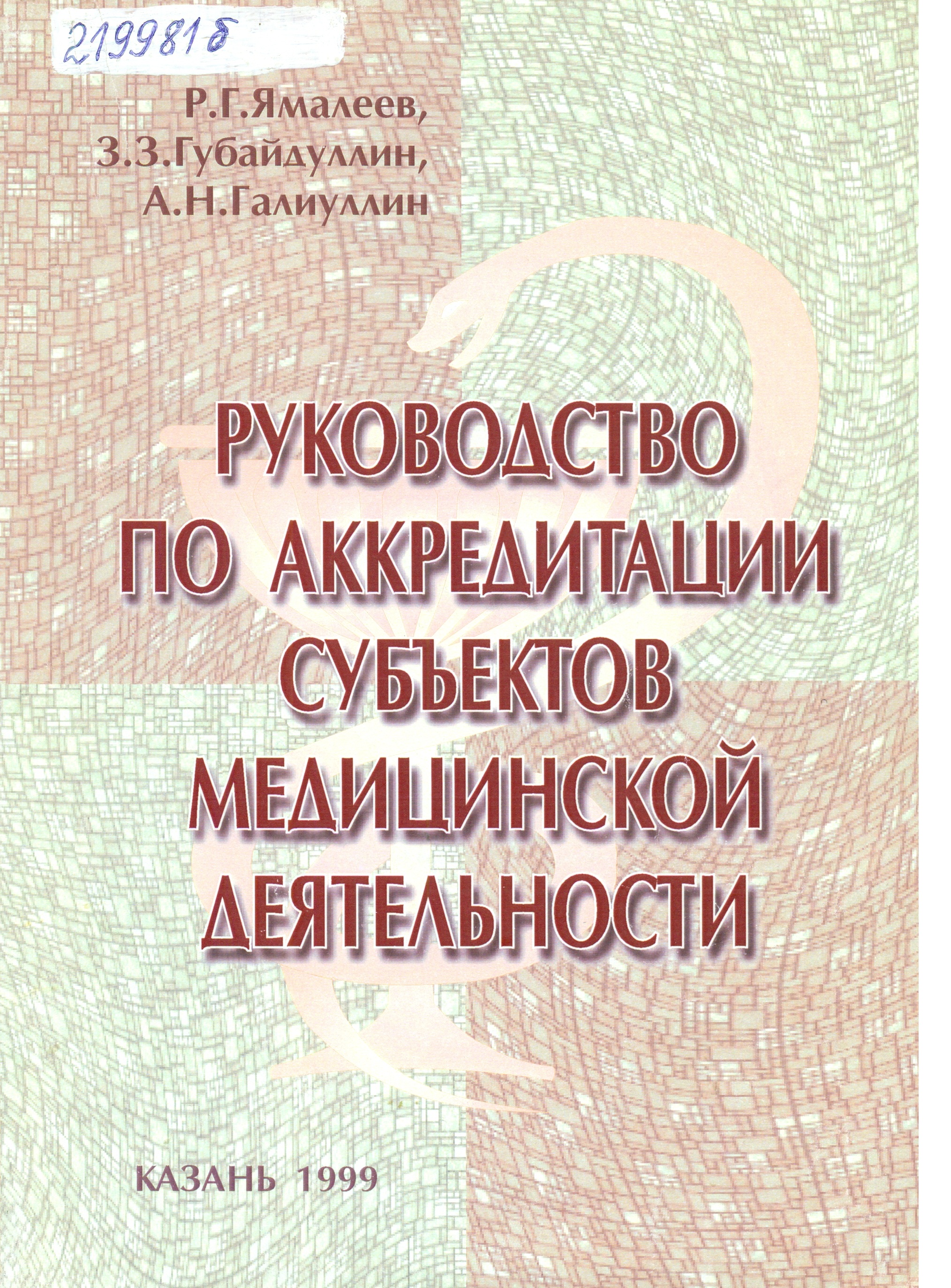 Руководство по аккредитации субъектов медицинской деятельности / Р. Г. Ямалеев, З. З. Губайдуллин, А. Н. Галиуллин. - Казань : Медицина, 1999. - 196, [4] с.