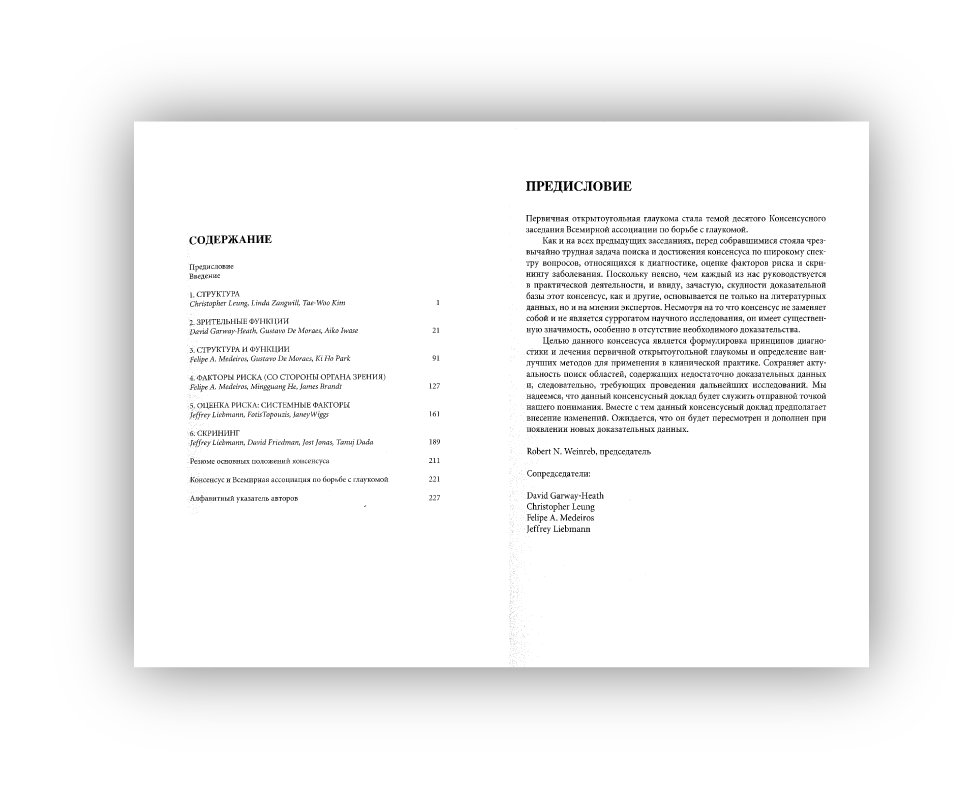 Диагностика первичной открытоугольной глаукомы: Консенсусный доклад Всемирной ассоциации по борьбе с глаукомой / [Всемирная глаукомная ассоциация] ; ред.: Роберт Н. Вайнреб [и др. ; пер. с англ. А. Б. Галимовой ; науч. ред.: Е. А. Егоров, А. В. Куроедов]. - Москва : Офтальмология, 2019. - XX, 219, [9] с. : ил., фот., табл., портр.