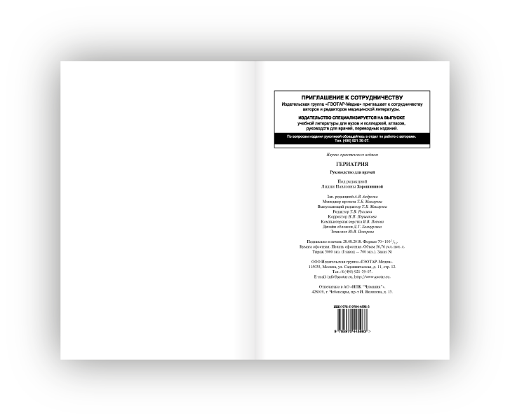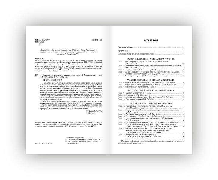 Гериатрия: руководство для врачей/ [К.М. Абдулкадыров, Л.И. Аниконова, В.Н. Анисимов и др.]; под ред. Л.П. Хорошининой. - Москва: ГЭОТАР-Медиа, 2019. - 698, [2] с., [6] л. цв. ил.: ил., табл.