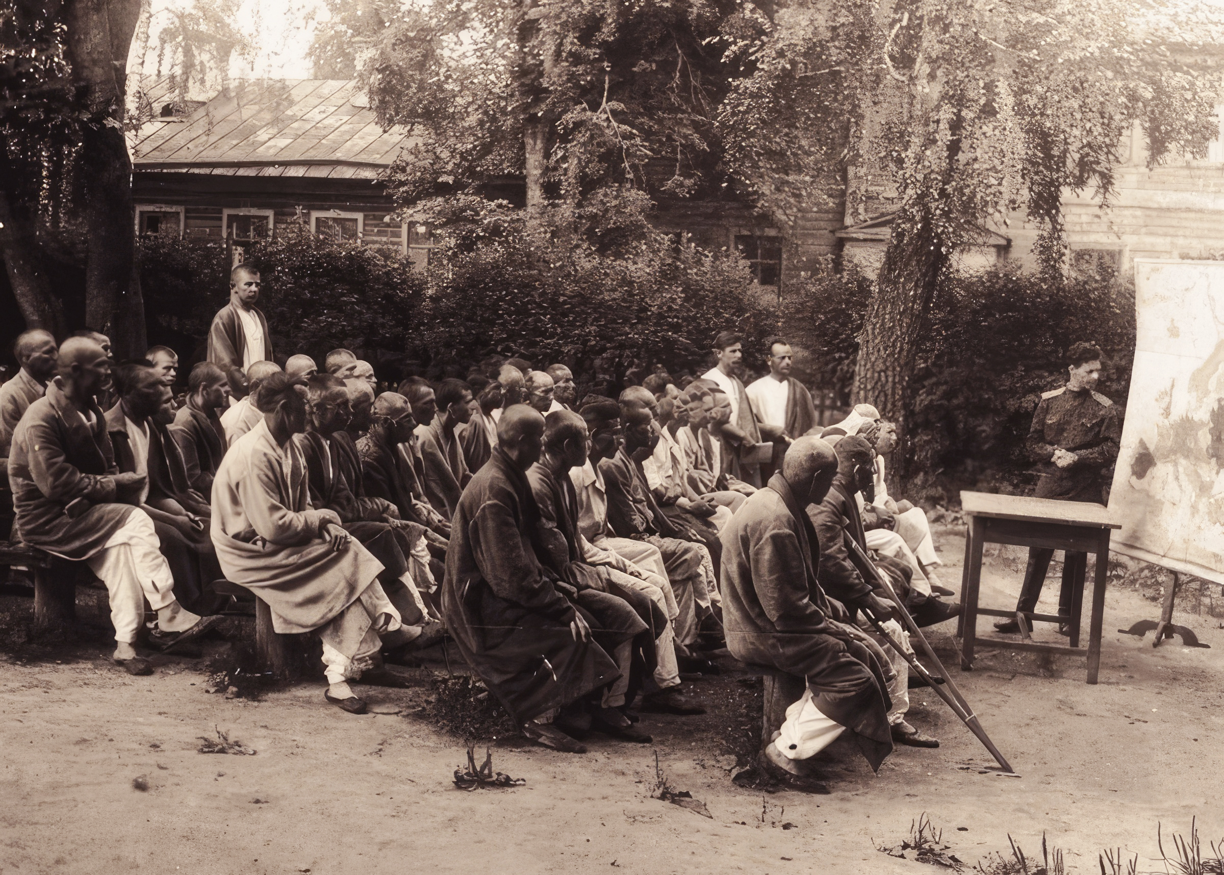 Политрук госпиталя проводит лекцию для раненных бойцов