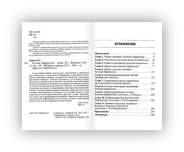 Болезнь Паркинсона/ О. С. Левин, Н. Ф. Федорова. - 4-е изд. - М.: МЕДпресс-информ, 2014. - 383, [1] с.: ил., табл.